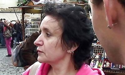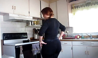 Mamma stands unrepining and enjoys raunchy sex with her son