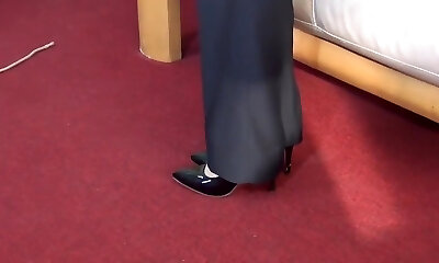 A magnificent-looking brunette French girl enjoys punishing her horny small dick slave