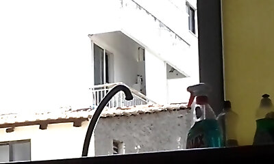 Showcasing to the cleaner and masturbation for money