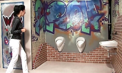 Stunning MILF Is In The Toilet With Xxl Stiffy And She Must Suck It