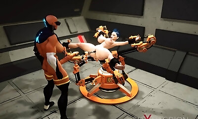 Cyber shag machine in act! Sexy shemale plays with super busty girl
